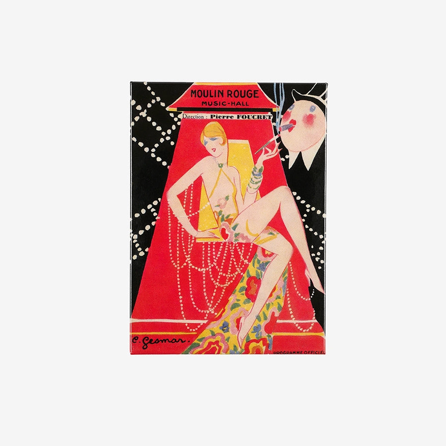 This magnet features an elegant illustration of Mistinguett, adorned with pearl necklaces, created by Charles Gesmar, a famous model maker and poster artist at the Moulin Rouge during the Art Deco period. A refined decorative accessory, ideal for adding a retro, Parisian touch to your interior.