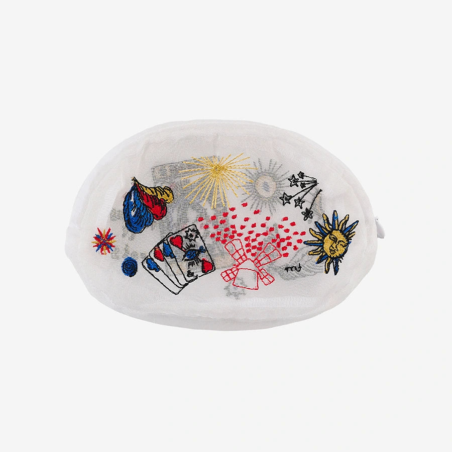 Moulin Rouge® x Brigitte Tanaka: Discover the Divination clutch bag, made from 100% organza and ready to slip into your bag to accompany you everywhere with elegance. Entirely embroidered, the Divination clutch bag is designed as an ode to poetry and delicacy and will hold all your secrets.