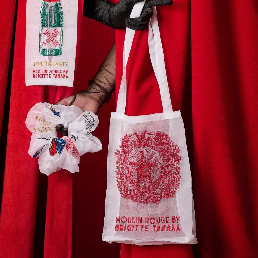 Moulin Rouge® x Brigitte Tanaka: Succombez au charme captivant du Petit Sac Moulin Mystère. En organza transparent et délicatement brodé de lurex rouge scintillant, il capture l’énergie effervescente de Moulin Rouge® et offre un écrin à vos petites histoires, pour que chaque sortie devienne un instant surprenant.