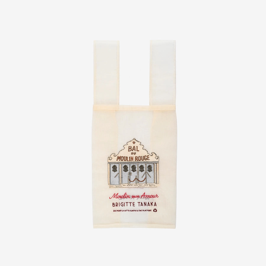 Moulin Rouge® x Brigitte Tanaka: Fall for the charm of the Bal du Moulin Rouge Bag. Made from delicately embroidered organza, it showcases the iconic hall of the renowned cabaret. Elegant and refined, it accompanies you daily with style and lightness.