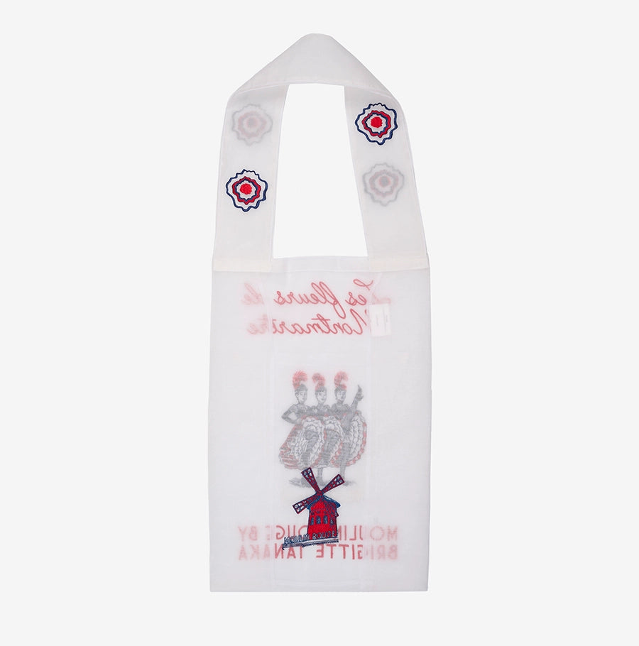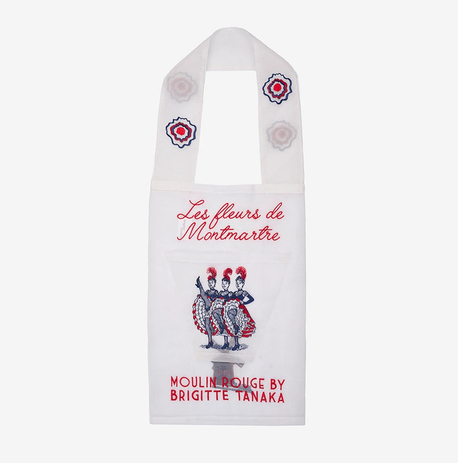 Moulin Rouge® x Brigitte Tanaka: Fall under the charm of the Fleuriste Cancaneuse Bag. Inspired by the cancan dancers of the era, this white embroidered organza bag transforms an everyday accessory into a piece full of whimsy and glamour.