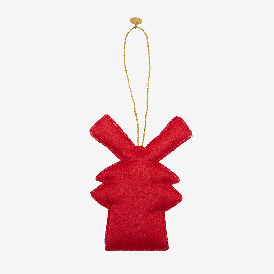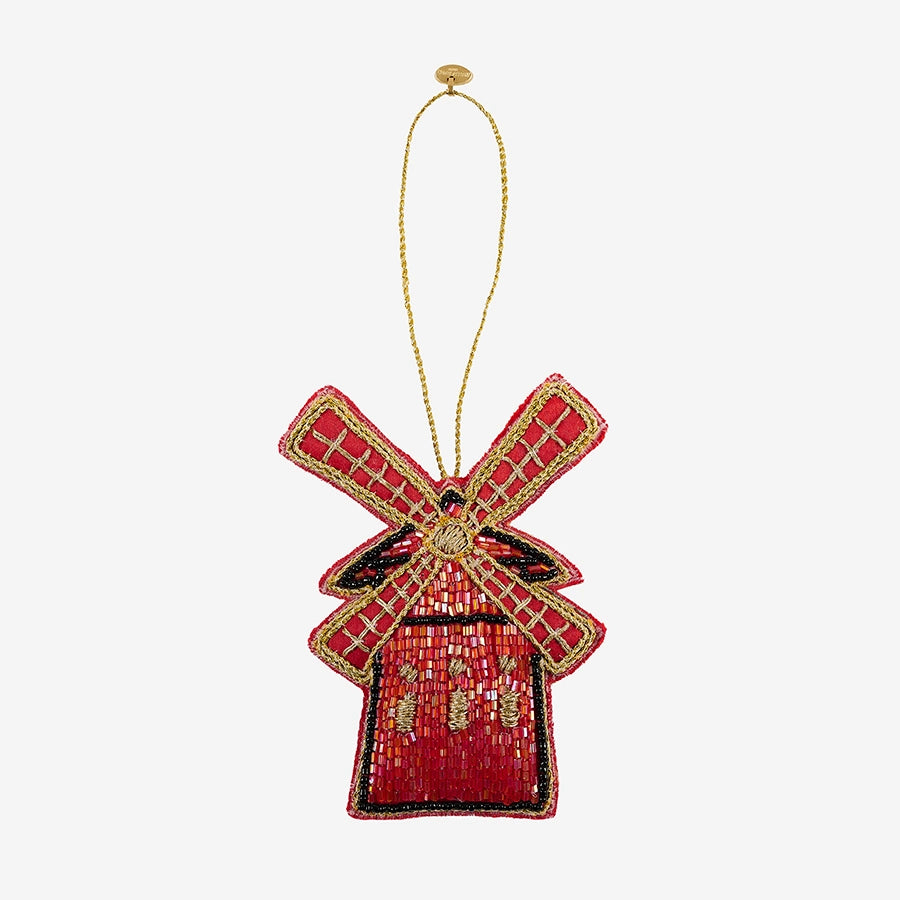 Succumb to the charm of this Moulin Rouge® Christmas decoration, a delicate embroidered hanging ornament that echoes the iconic shape of the famous cabaret. Adorned with hundreds of tiny glass beads, this little embroidered Moulin is the perfect souvenir of a magical moment, to hang on any Christmas tree.